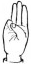 На ћирилици написано ДАНИЈЕЛ ТРИКОШАНИН састоји се из 17 слова [?]. Исписано ћириличном једноручном азбуком за глувонеме: